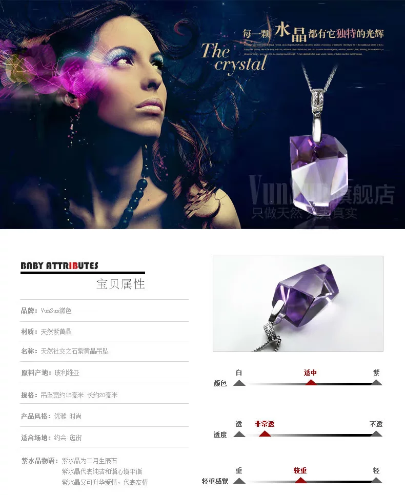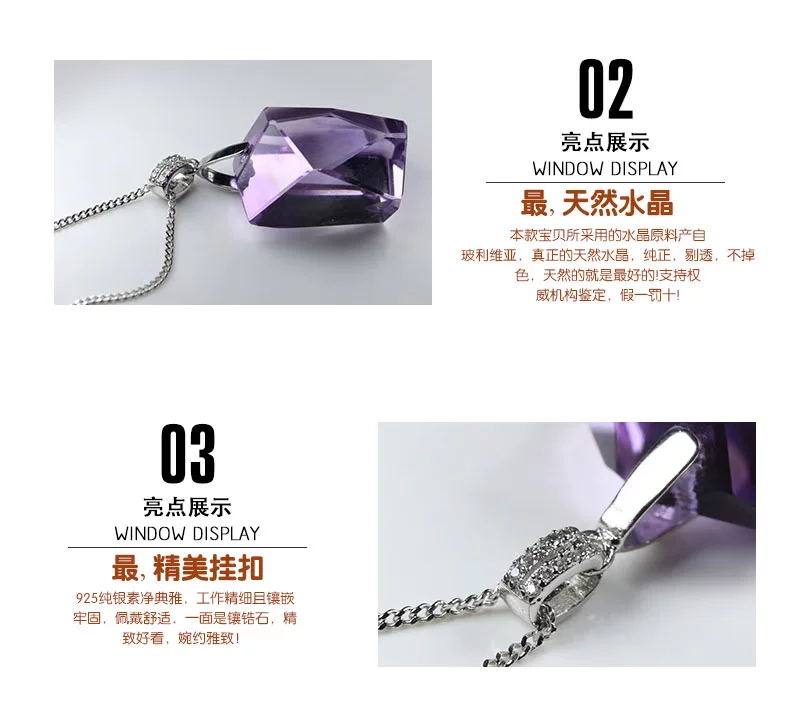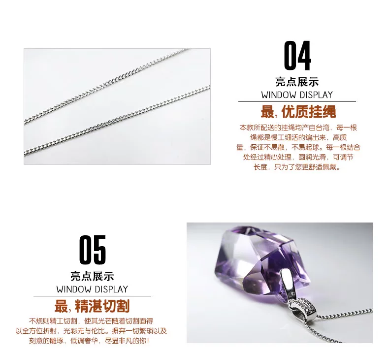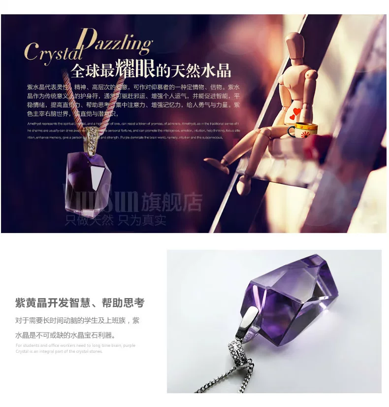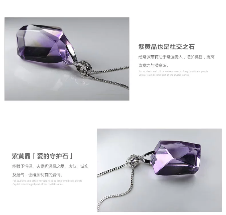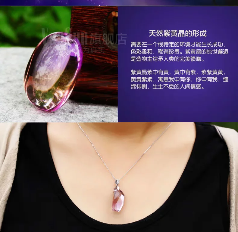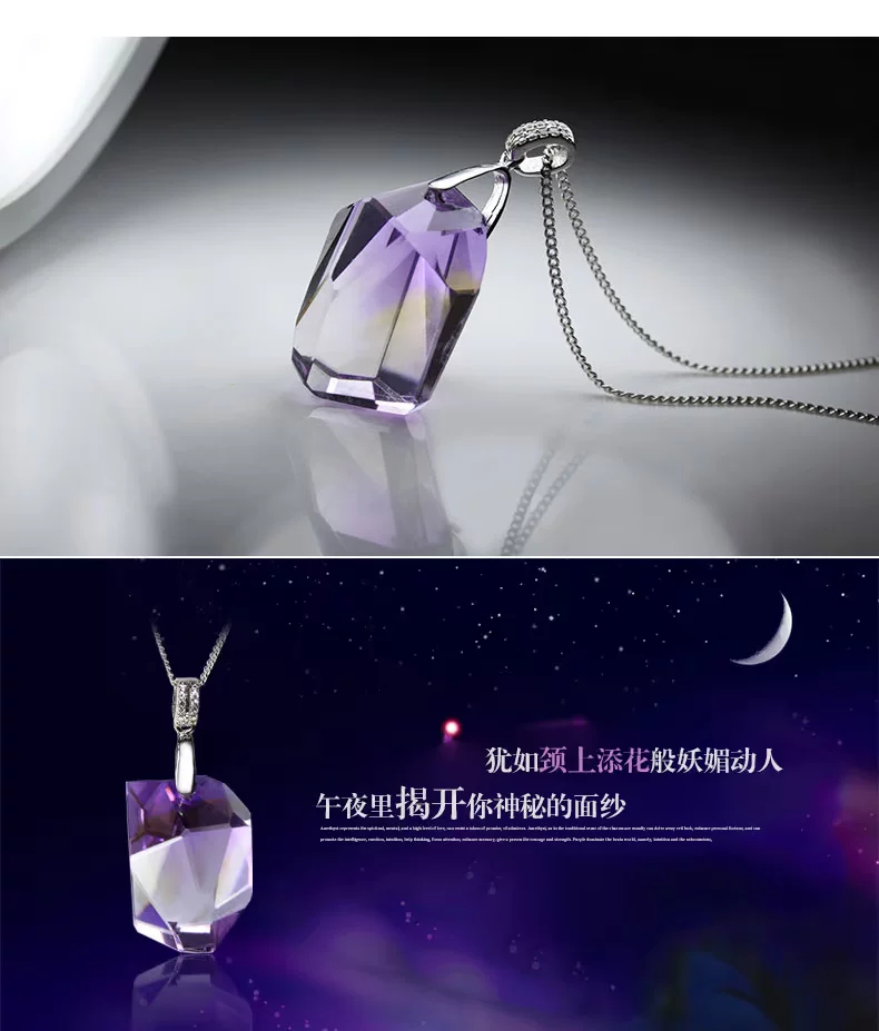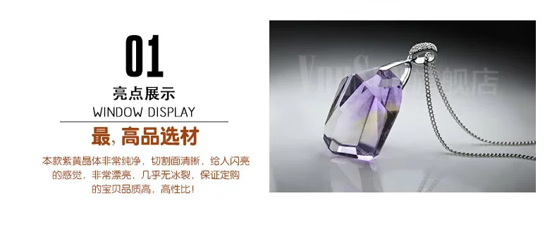 名称:时尚配饰天然水晶紫水晶项饰切面紫黄晶项链吊坠女款饰